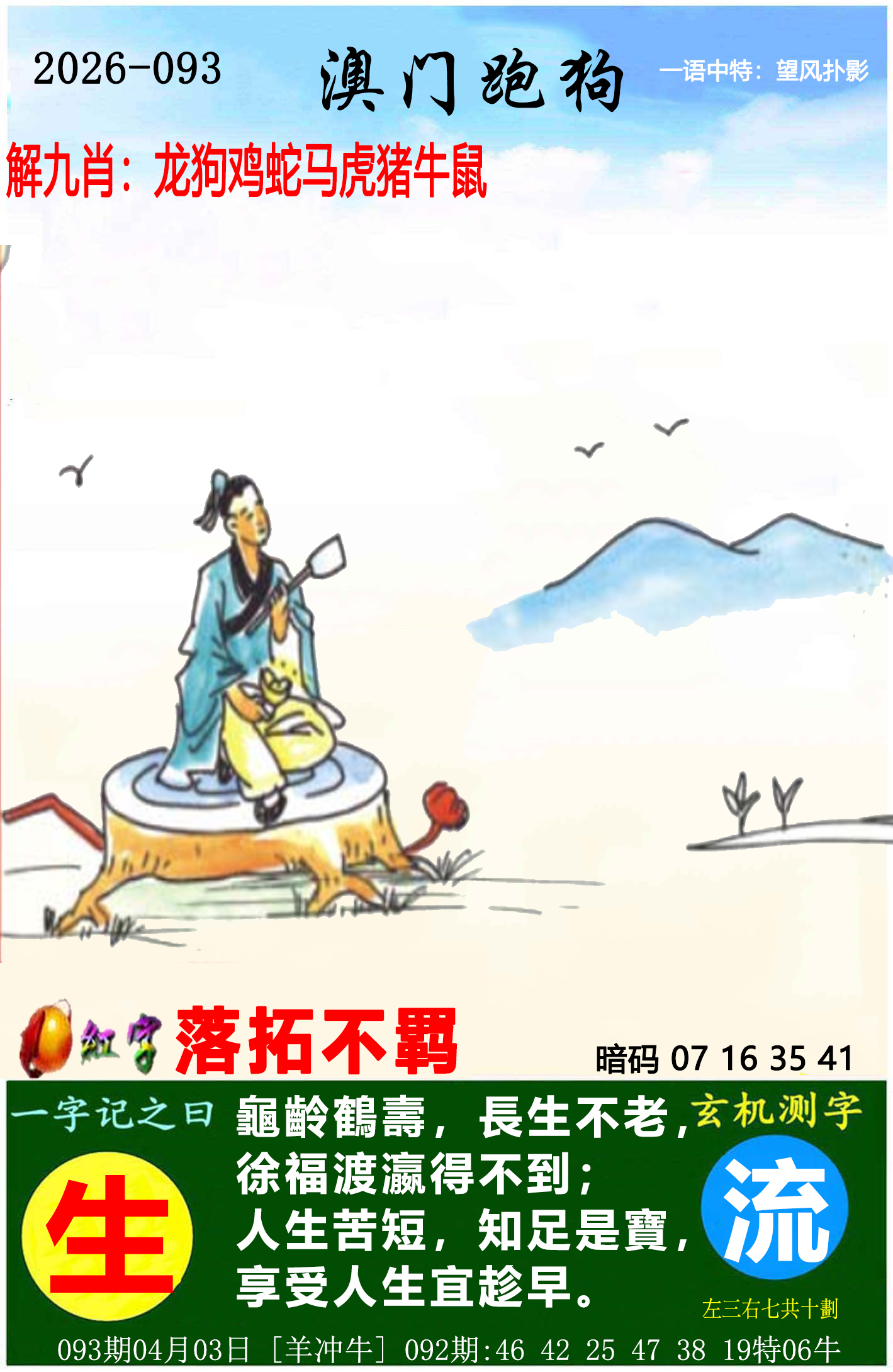 | 093期: 家(羊鸡猪狗)野(兔龙蛇猴)开?00准 |