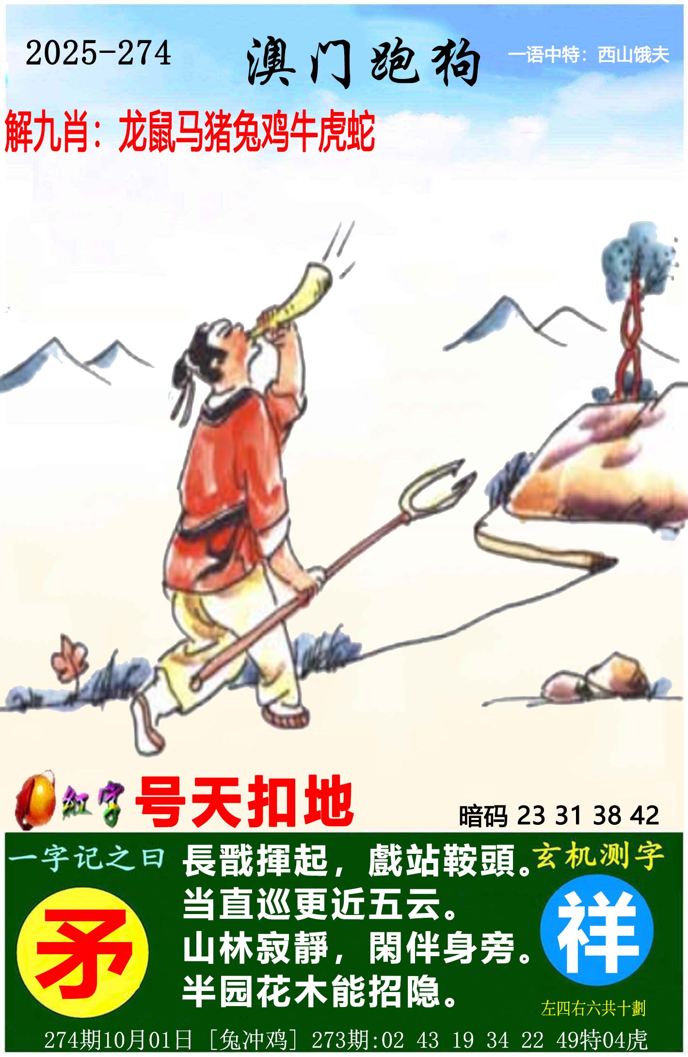 274期:⑨肖 | 兔鼠羊牛马狗猴龙猪 | 开:狗44中 |